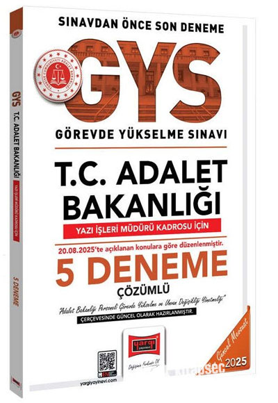 2025 GYS Adalet Bakanlığı Yazı İşleri Müdürü 5 Deneme Çözümlü Görevde Yükselme Yargı Yayınları